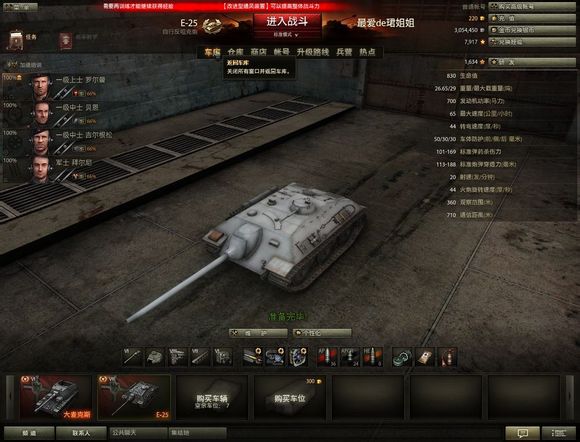 前几天天猫上面有84块的E25买,我把本来准备买衣服的100块充进去,把E25抱回家。单单只是看数据的话本来倒并不怎么觉得有多厉害(毕竟穿深低嘛,我拿它来和同级其他歼击车做了对比,不止七级,连上一级的歼击车里面穿深超过它的也大有车在~~),也就是看它长得萌(萌得像只小强),才把它纳入后宫的说~~不过买了回来后,惊喜的发现,这车的手感好得出奇啊!所以在这里和大家分享一下这车的作战心得。