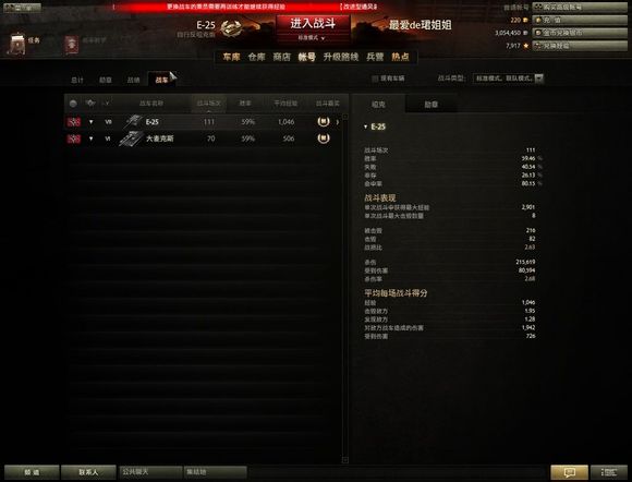 前几天天猫上面有84块的E25买,我把本来准备买衣服的100块充进去,把E25抱回家。单单只是看数据的话本来倒并不怎么觉得有多厉害(毕竟穿深低嘛,我拿它来和同级其他歼击车做了对比,不止七级,连上一级的歼击车里面穿深超过它的也大有车在~~),也就是看它长得萌(萌得像只小强),才