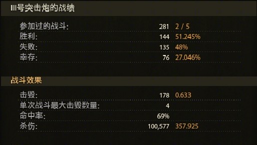 但要是觉得我是打小车刷出来的效率那你就错了,可以在游戏里查我的详细战绩,1-6级车场次只占很小一部分,而且主要还是一年多前刚玩没多久还很坑爹的时候打出来的,比如神车三突当初的战绩就很烂: