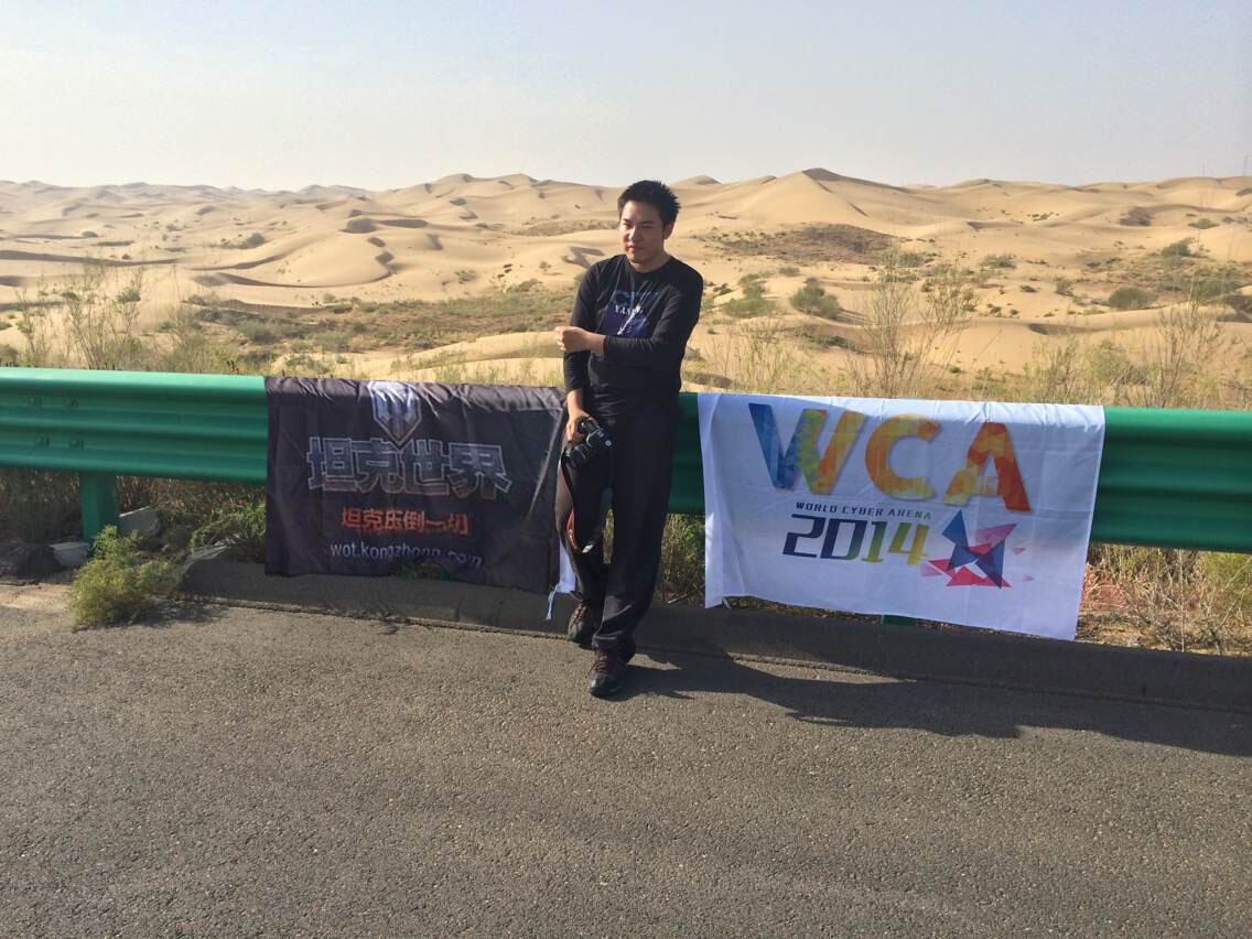 在途中风景盎然,老喵并没有只顾欣赏风景,每到一处都展示出"坦克世界"与"WCA"的旗帜,不断地传播电子竞技精神的正能量。
