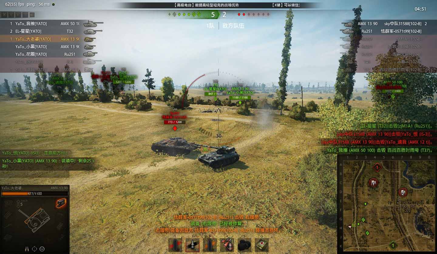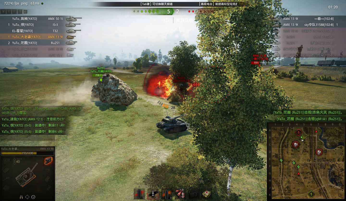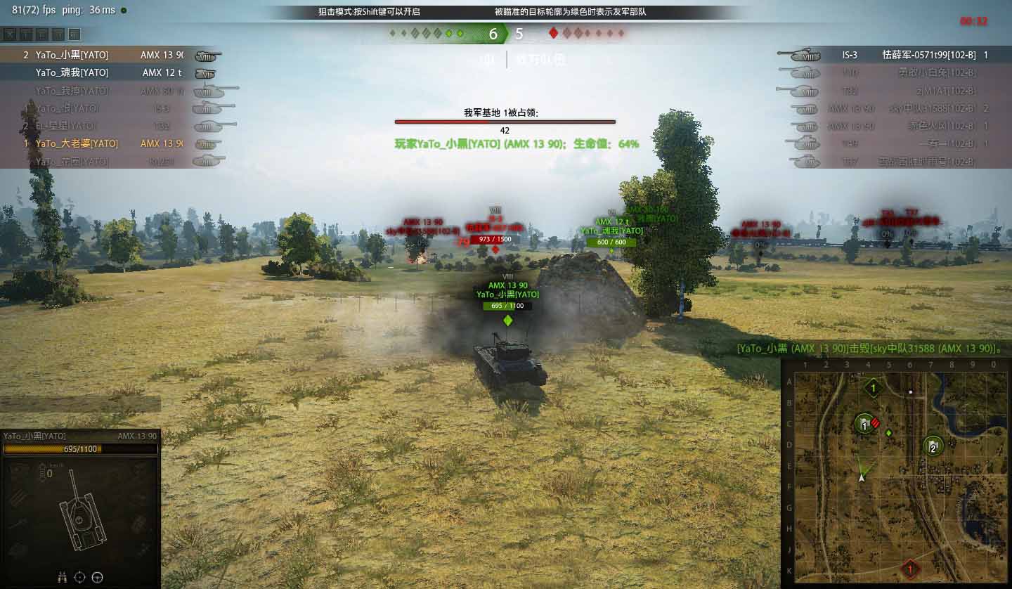 第二局:双方攻守互换,YATO防守方。开局,YATO似乎第六感一般猜到了VG的动向,主力布防于5、6线,分兵两台轻坦从2线直下进行进攻性侦查。在5分45时,YATO中线守军侦察到VG重坦于E6附近活动,意在进攻2号基地,立即调军压制B6、E6两个要点,并派2台侦查轻坦从J0上山,意在最大限度压缩VG的活动范围。但VG不愧是老牌强队,YATO的上山部队在转移过程中全程没有暴露,但VG就已经嗅出YATO的意图,立即派两台1390打通B6,以争取更多的活动空间。双方交火的十分激烈,几轮过后,战成5:5局面。此时,VG利用YATO山下部队尽失的空档,转场占领1号基地,而YATO剩余轻坦1390、12t各一台,并且满健康状态,两台轻坦迅速走位调整,用一点一打的娴熟配合,拿下了此局。YATO 2:0 VG.天喔。