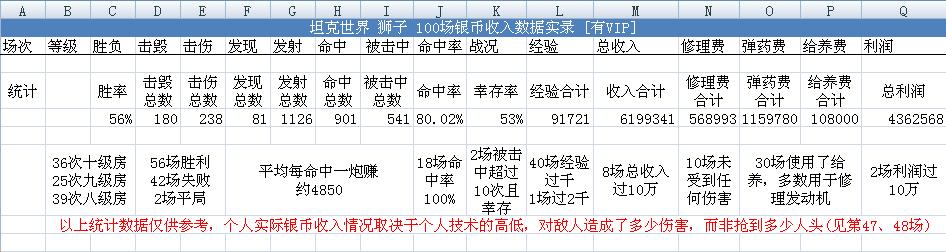 【收益】0.9.4版本——D系“狮”式百场银币收益数据实录本数据基于0.9.4版本制作,带VIP,不含双倍五倍首胜及450%等各种经验及银币加成了解更多八级金币车相关数据请点击【专题】坦克世界八级金币车系列专题一、战车配置技能方面:D系金币车狮式百场银币收益数据实录配件方面:二、